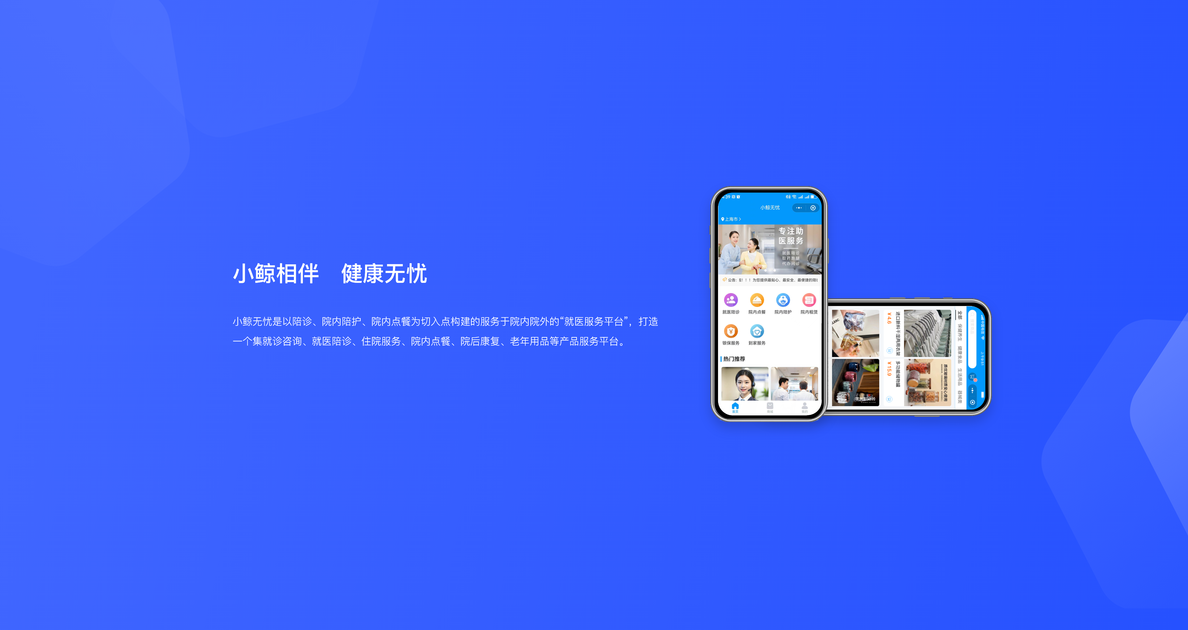 小鲸无忧还有在线商城、到家服务、院内租赁等服务,补齐了整个健康就医环节。提供了诊前咨询、预约挂号、代办问诊;到诊中的就医陪诊、快速入院、院内租赁、院内点餐、院内陪护;再到诊后的上门护理、助老商城、营养餐食、代问诊、代配药等服务的全场景覆盖。